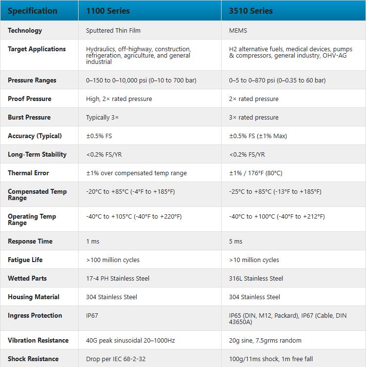 In the realm of industrial pressure measurement, GEMS Sensors offers two prominent series—1100 and 3510—each tailored to distinct operational needs. This analysis explores their technical specifications, application domains, and performance traits to guide users in selecting the optimal solution.